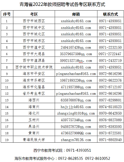 2.青海省2022年教師招聘考試各考區聯系方式