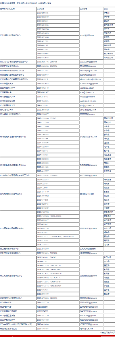 新疆2023年全國碩士研究生招生考試健康信息填報(bào)及各報(bào)考點(diǎn)咨詢聯(lián)系方式公布