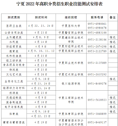 附件:寧夏2022年高職分類招生職業技能測試安排表.