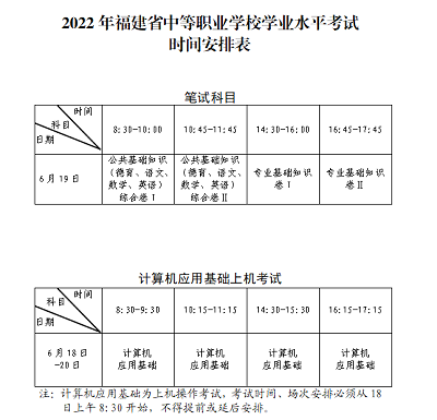 福建省2022年中等職業學校學業水平考試報名有關事項公告