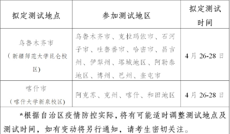 二、考生于4月22日起(如測試地點或時間有變動,教育考試院將及時公告,請密切關注),考生可登錄新疆招生網 ,須按系統提示接受考前教育(閱讀考生考場規則及體育類專業測試誠信承諾書)并承諾,自行下載打印《自治區2022年普通高等學校體育類招生專業測試準考證》(以下簡稱“專業測試準考證”)。考生須攜帶專業測試準考證、有效身份證件、通信大數據行程卡、新疆政務服務健康通行碼及有效期內(以測試點屬地疫情防控要求為準)核酸檢測陰性證明參加測試。